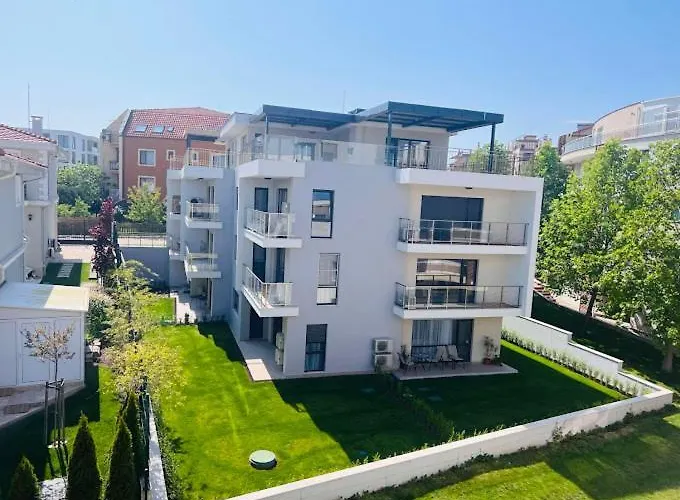 Appartamento Sunny Garden Deluxe Burgas, di 55 m^2, che offre viste sul giardino, si trova a 4 km dalla Zlatna Ribka a Burgas. Il Wi-Fi e il parcheggio privato gratuito sono a disposizione degli ospiti per le loro esigenze di lavoro o di svago.